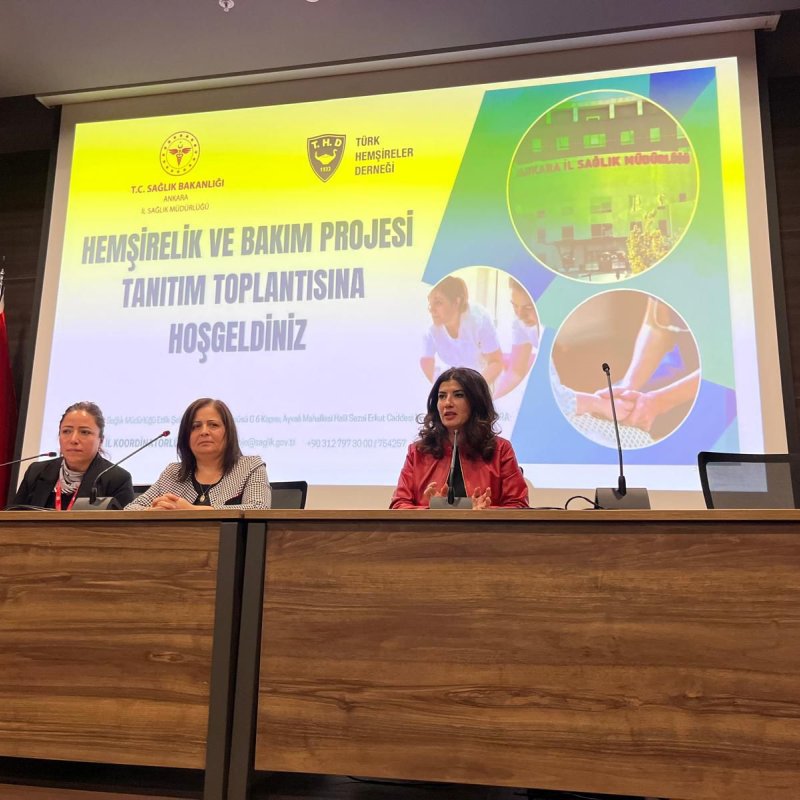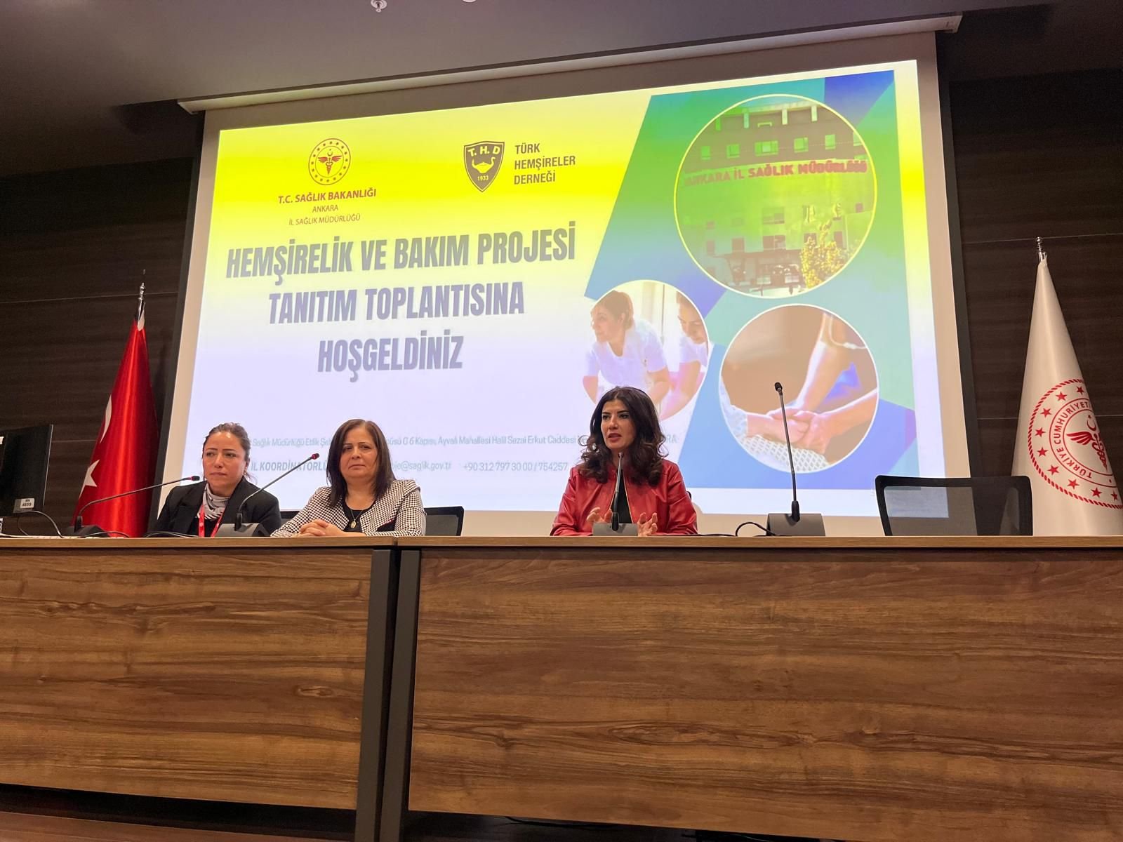 Ankara İl Sağlık Müdürlüğü ile imzalanan protokol kapsamında uygulama aşamasına geçilen “Hemşirelik ve Bakım Projesi”nin tanıtımı, Ankara İl Sağlık Müdürlüğü başkanlığında ve Ankara ilindeki kamu hastanelerinin bakım hizmetleri müdürlerinin katılımıyla gerçekleştirilen bir toplantıda yapıldı. Toplantıda söz alan THD Başkanı Azize Atlı Özbaş, projenin önemi hakkında değerlendirmelerde bulundu.