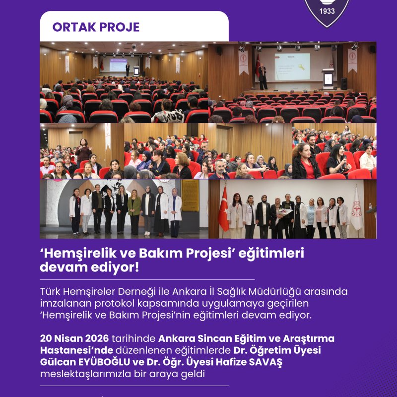 Türk Hemşireler Derneği ile Ankara İl Sağlık Müdürlüğü arasında imzalanan protokol kapsamında uygulamaya geçirilen ‘Hemşirelik ve Bakım Projesi’nin eğitimleri devam ediyor.