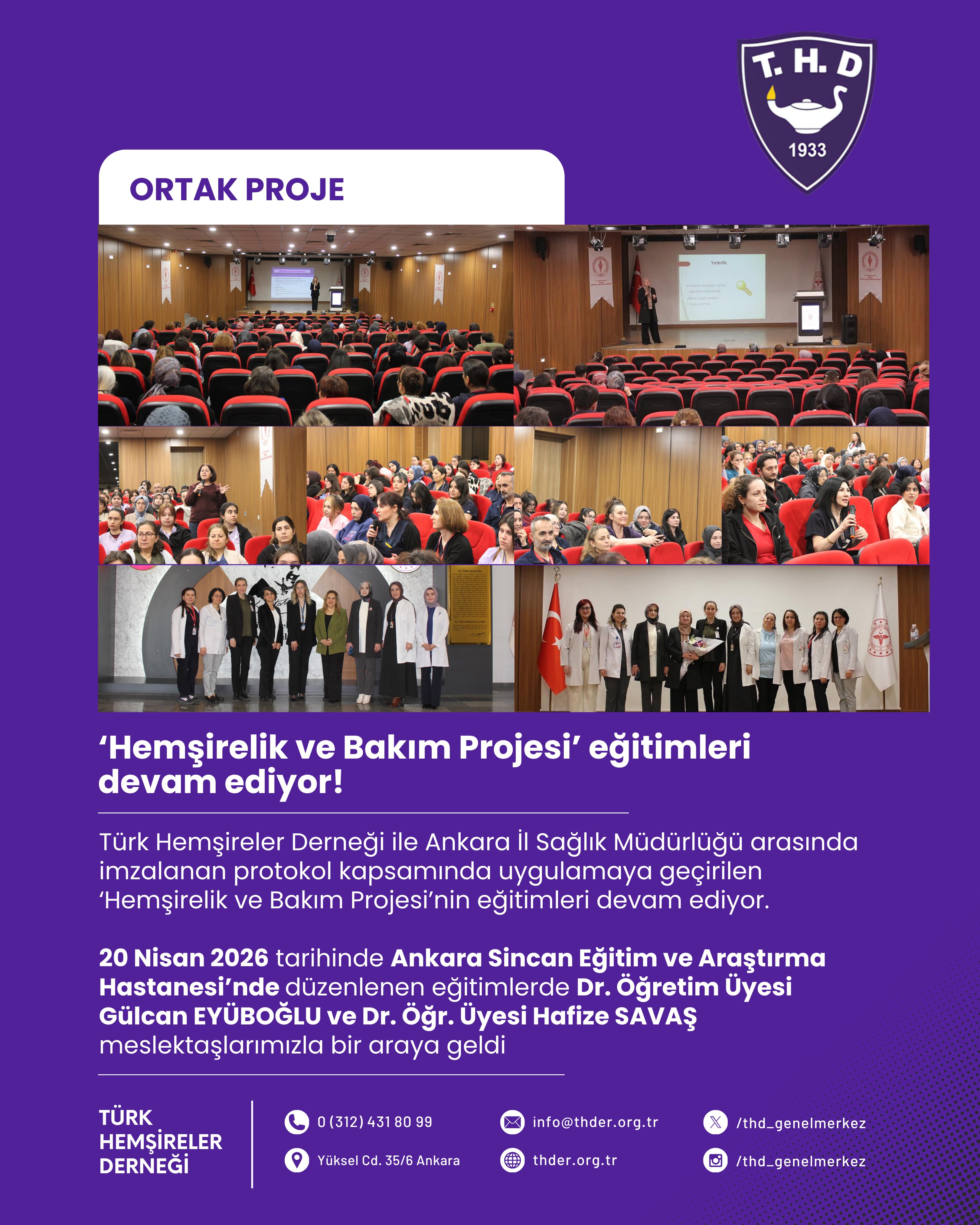 Türk Hemşireler Derneği ile Ankara İl Sağlık Müdürlüğü arasında imzalanan protokol kapsamında uygulamaya geçirilen ‘Hemşirelik ve Bakım Projesi’nin eğitimleri devam ediyor.